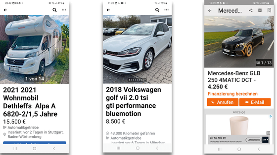 Sobald Verbraucher das geforderte Geld überwiesen haben, lässt sich der Betrug nicht mehr rückabwickeln, dann bleibt ihnen nur noch, die Polizei einzuschalten. Deshalb sollten Kaufinteressenten auf Anzeichen in Verkaufsanzeigen achten, die auf einen Schwindel hinweisen könnten. Eines der auffälligsten Merkmale für ein unstimmiges Bild ist der ins Auge springende günstige Verkaufspreis des inserierten Fahrzeugs. Dieser liegt meist deutlich unter den marktüblichen Konditionen, im Falle des oben rechts abgebildeten Wohnmobils beispielsweise kosten Neufahrzeuge fast das Zehnfache des erst 1,5 Jahre alten angeblichen Exemplars. Dass da etwas nicht stimmen kann, liegt auf der Hand. Der ARCD empfiehlt, die angegebenen Fahrzeugdaten immer mit mehreren Inseraten auf Plattformen wie Mobile.de oder Autoscout24 zu vergleichen. „Wenn Fahrzeuge zu günstig sind, sollte man grundsätzlich die Finger davonlassen“, sagt auch Kriminalhauptkommissar Endres.
