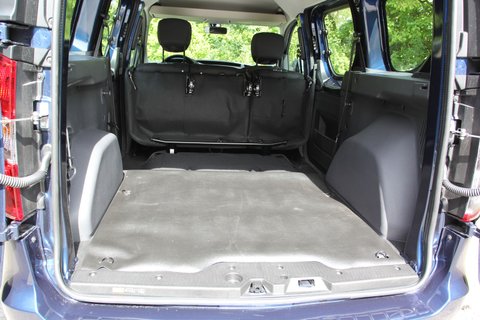 Zum Nutzwert zählen die asymmetrisch geteilten Portaltüren im Heck, die sich platzsparend zur Seite öffnen. Nur der konstruktionsbedingte Mittelsteg stört die rückwärtige Sicht etwas. Hinter den Türen verbirgt sich ein 800 Liter großer Kofferraum, der neben robustem Kunststoff auch viel nacktes Blech offenbart. Die Rückbanklehne lässt sich standardmäßig im Verhältnis 1/3 zu 2/3 umlegen, erzeugt aber eine Stufe. Wird die ganze Rückbank senkrecht gegen die Vordersitze geklappt, entsteht ein ebener Laderaum von 3.000 Litern.