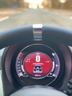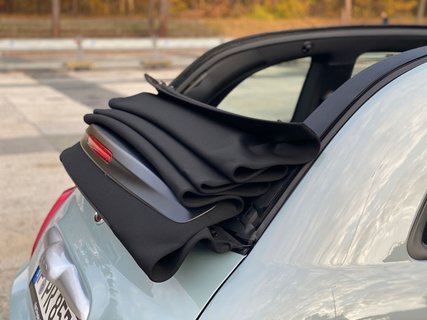 121 Gramm davon pro Kilometer stehen nach WLTP-Zyklus in den Zulassungspapieren des Testwagens, das entspricht 5,2 Litern Verbrauch. Nur 0,3 Liter mehr benötigten wir im Alltag. Trotzdem: Für ein rund 1.100 Kilo leichtes und dreieinhalb Meter kurzes Wägelchen ist das nicht sonderlich knausrig. Zwar füllt die Rekuperation beim Gaswegnehmen den Akku im Display sichtbar rasch wieder auf. Wer aber wie wir häufig außerorts unterwegs ist, hat dazu nur selten Gelegenheit. Als schickes Cabrio ist der 500 Hybrid ab 19.584 Euro zudem teuer, dafür erzeugt er bei geöffnetem Verdeck unbezahlbar viel gute Laune.