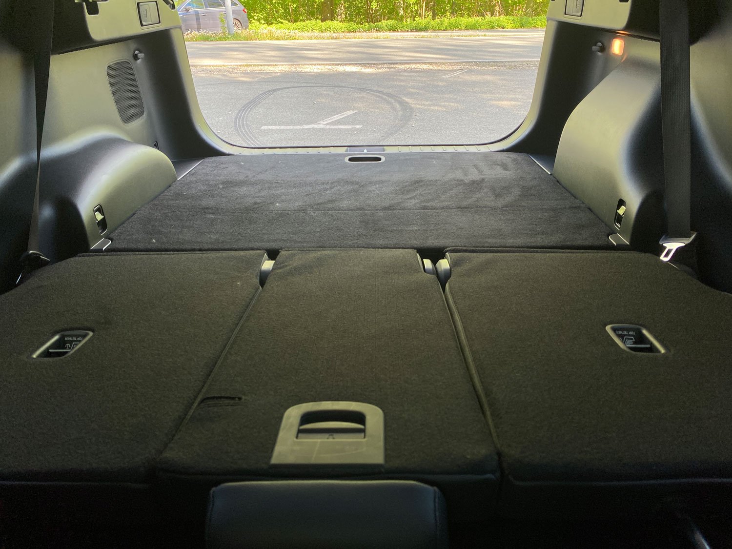 Auf den vorderen Sitzen fühlt man sich ebenfalls an das weite Rund eines Stadions erinnert. Aus den Türtafeln heraus erstreckt sich im Stile von Zuschauerrängen in weiten Bögen das Cockpit vor den Passagieren, nur unterbrochen durch eine riesige Anzeigentafel. Die ist als 10,25 Zoll großer Breitbild-Touchscreen vorrangig für Infotainment-Funktionen zentral positioniert. Darunter finden sich auf glänzender Spielfläche weitere Bedienfelder mit Touchsensoren für die Klima-Steuerung.