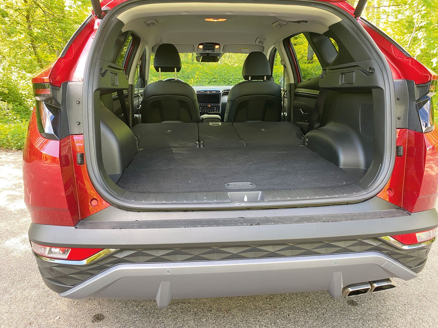 Unser von außen nicht aufladbarer Hybrid-Testwagen präsentierte sich hervorragend geräuschgedämmt und ließ sich häufig im reinen Strombetrieb (EV) fahren – selbst bei niedrigem Akkustand. Den Tucson mit Unterstützung des Verbrenners kurz auf das gewünschte Tempo gebracht, dann den Fuß vom Gaspedal gelupft und leicht wieder aufgesetzt, schon rollte er im EV-Modus bei wenig Energieaufwand lange in gleichmäßigem Tempo. So nutzten wir sinnvoll Schwungenergie auch auf Landstraßen. In günstigen Fällen wird beim Rollen im EV-Modus auch rekuperiert. Belohnt wurden wir mit einem Praxisverbrauch von 6,5 Litern Super. Ein passabler Wert für ein so geräumiges Auto mit 169 kW/230 PS Leistung, in dem fünf Personen samt Gepäck sehr bequem reisen. Interessanter Aspekt am Rande: Das Hyundai-SUV verzichtet auf einen „normalen“ Fahrmodus. Eco ist – neben Sport – die Standardeinstellung. Eine sinnvolle Entscheidung für ein Hybridfahrzeug.