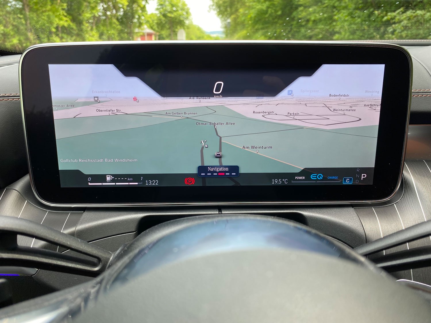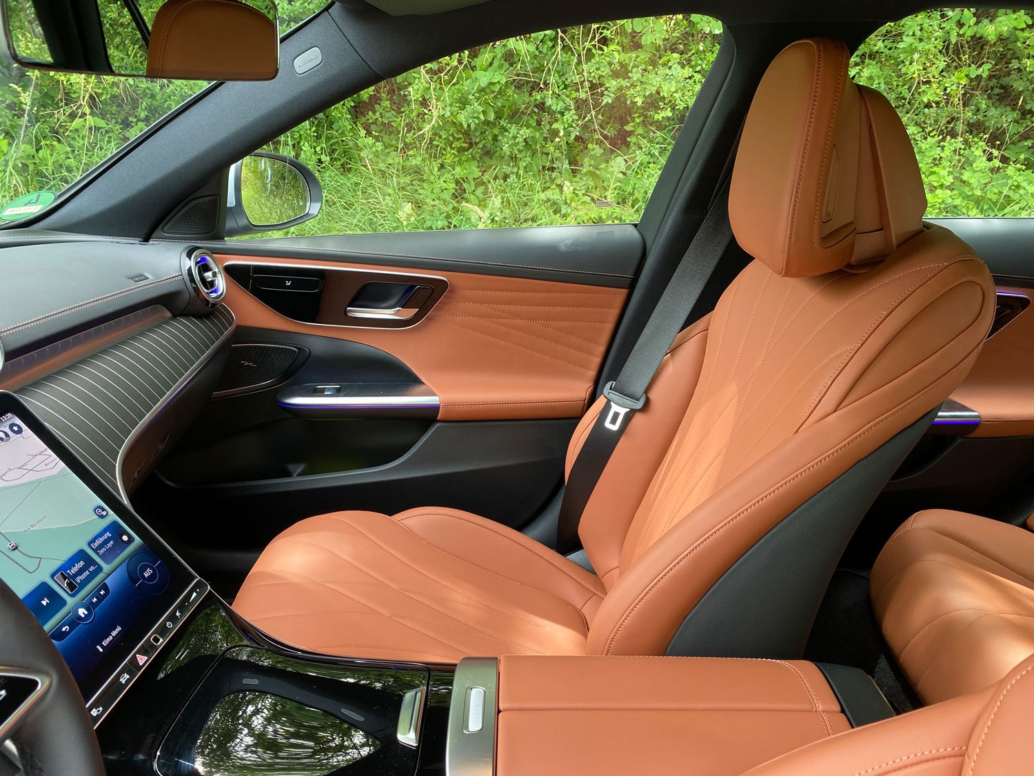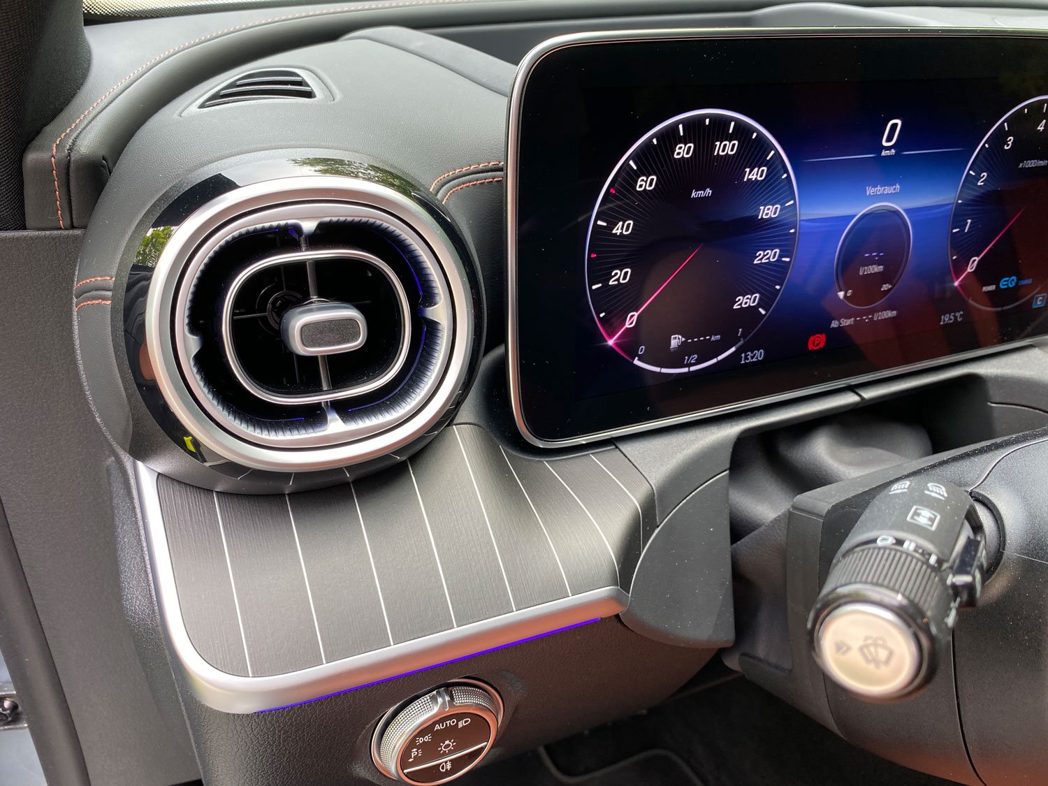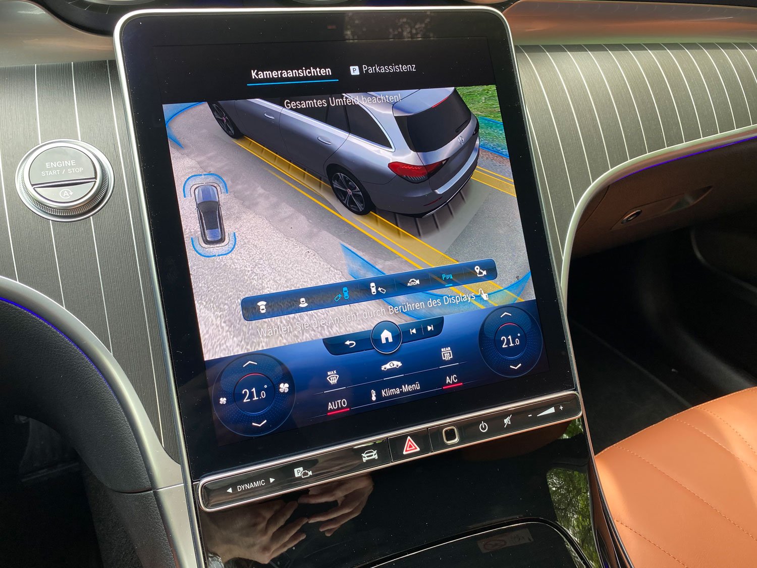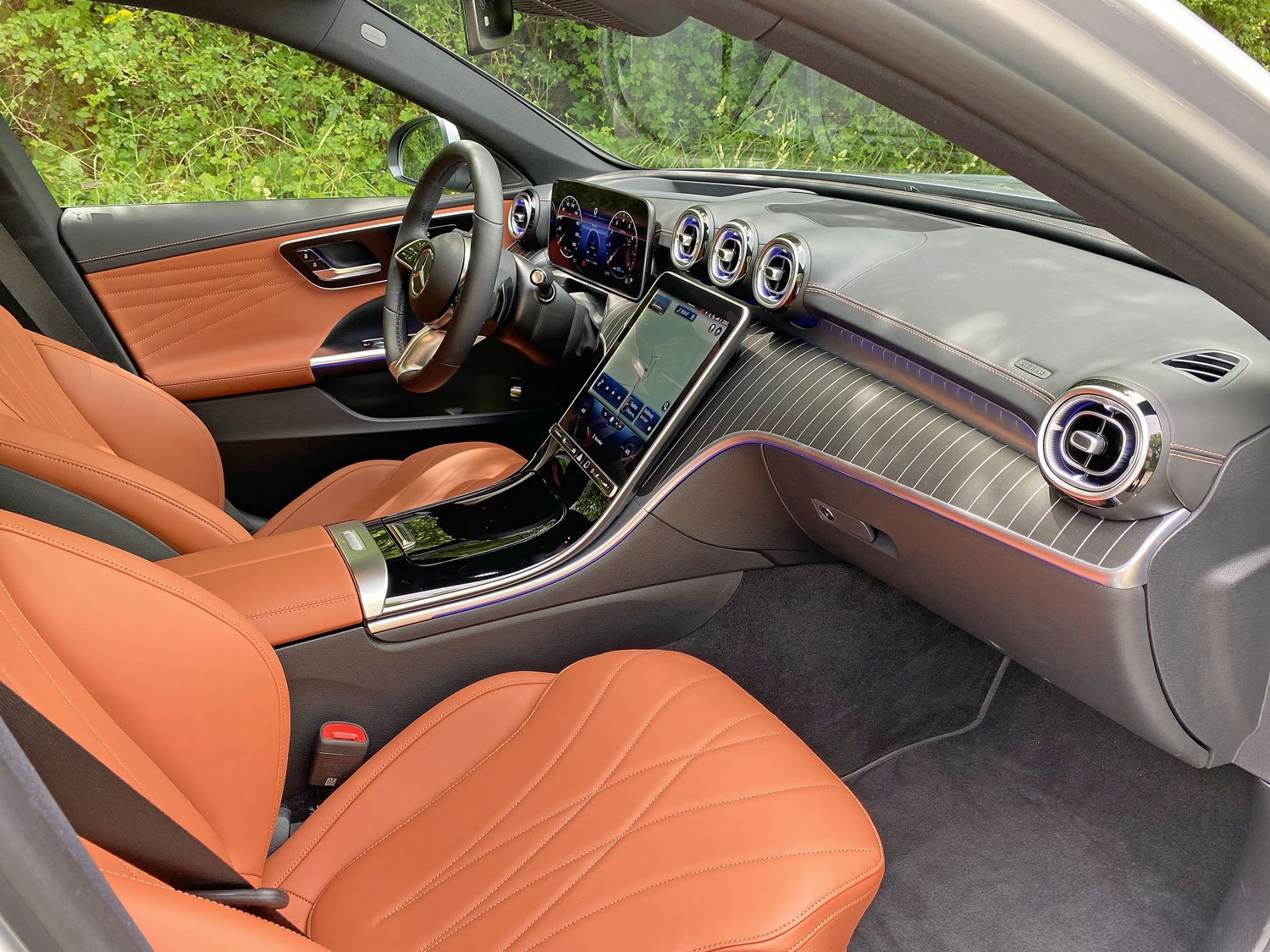 Tiefgreifender verändert hat sich der Innenraum. Das Cockpit erlebte einen Digitalisierungssprung und wird nun dominiert von einem zentralen hochauflösenden Display, das leicht zum Fahrer geneigt ist. In unserem Testwagen war die größere der beiden verfügbaren Versionen mit 11,9 Zoll Bildschirmdiagonale verbaut (im Paket ab 1.309 Euro). Die zweite Generation des Infotainmentsystems MBUX bringt nun Flair der S- in die C-Klasse. Unschöner Nebeneffekt solch großer Monitore und glänzender Flächen rundherum: Jede Fingerberührung erzeugt einen leicht fettigen Abdruck.