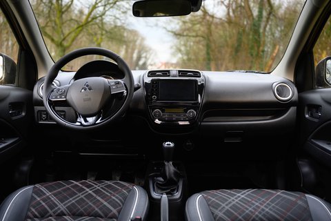 Reden wir über den Platz: Wenn man als Fahrer eine Größe von 1,90 Meter nicht überschreitet, ist der Space Star komfortabel. Ansonsten wird es schwierig, eine Sitzposition zu finden, bei der der Kopf nicht an den Dachhimmel stößt und die Augen nicht auf Höhe der Sonnenblende sind. Die Vordersitze lassen sich leider nicht weit genug herunterfahren. Auch im Fond sollte man nicht allzu groß gebaut sein, sonst wird es eng auf den drei Plätzen. Der Kofferraum ist mit 209 Litern natürlich auch kein Platzwunder, aber für den Wochenend-Einkauf oder einen Städtetrip zu zweit sollte er völlig ausreichen. Bei Letzterem ließe sich noch die Rückbank umklappen, um so 912 Liter Raum zu schaffen.