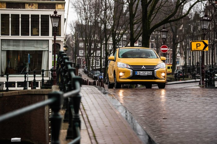 Was die Sicherheit angeht, kann sich der Space Star sehen lassen: Je nach Ausstattung sind gegen Aufpreis Spurhalteassistent, Rückfahrkamera und Fernlichtassistent verfügbar. Das Auffahrwarnsystem mit Notbremsassistent und Fußgängererkennung ist sogar Serie. Extrem praktisch im Stadtverkehr. In Amsterdam bräuchte es jedoch eher eine Radfahrererkennung . . .