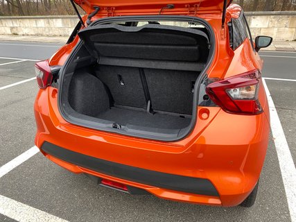 Weniger frisch als die Optik waren allerdings Antrieb und Ausstattung unseres Test-Micra, der uns Ende November übergeben wurde. Hier hat Nissan kurzfristig einiges geändert. Der Motor wurde auf mehr Effizienz getrimmt, leistet nun 68 kW/92 PS. Eine Alternative dazu gibt es nicht. Und die mit N-Connecta vergleichbare Ausstattungslinie heißt jetzt N-Design – mit Rückfahrkamera, Klimaautomatik, Nebelscheinwerfern und Alufelgen in 16 Zoll. Damit steht der Micra ab 19.590 Euro in der Preisliste. Das von 300 Litern auf gut einen Kubikmeter erweiterbare Kofferraumvolumen gibt es bereits in der Basisversion Visia ab 13.690 Euro.