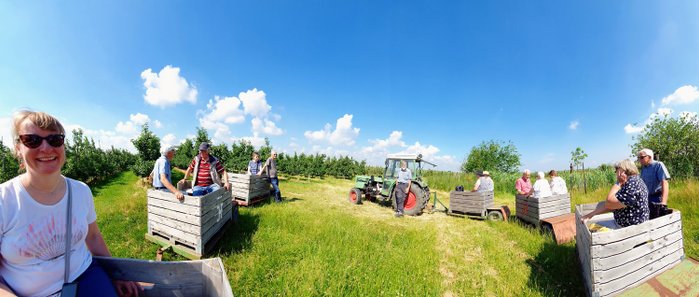 Dank der optimierten Abstimmung wurden für die An- und Abreise dieser Tagesfahrt Fahrgemeinschaften gebildet und als Treffpunkt der Obsthof der Familie Feindt im Alten Land vereinbart. Bereits kurz vor 10:00 Uhr konnte der Vorsitzende bei strahlendem Sonnenschein die OC-Reisegruppe auf dem Obsthof in York begrüßen.