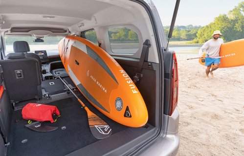 Drei Kindersitze auf der Rückbank. Zwillingskinderwagen im Kofferraum. Oder Stand-up-Paddle-Board einmal durchgereicht. Der Opel Combo-e Life ist ein praktischer Komplize für alle Lademanöver.