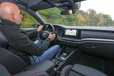 Obwohl der Octavia RS iV gegenüber dem RS-Turbobenziner über 200 Kilogramm mehr auf die Waage bringt, fährt er sich auf Landstraße und Autobahn angenehm dynamisch. Weniger Platz gibt es dagegen im Kofferraum, da der Benzintank aufgrund der mittig im Fahrzeugboden platzierten Akkus weiter nach hinten unterhalb des Kofferraumbodens positioniert wurde. Während der Benziner-RS als Combi fensterhoch und bei aufgestellter Rückbank noch fürstliche 600 Liter Gepäckraum bietet, müssen beim sportlichen Plug-in-Hybriden 490 Liter reichen.
