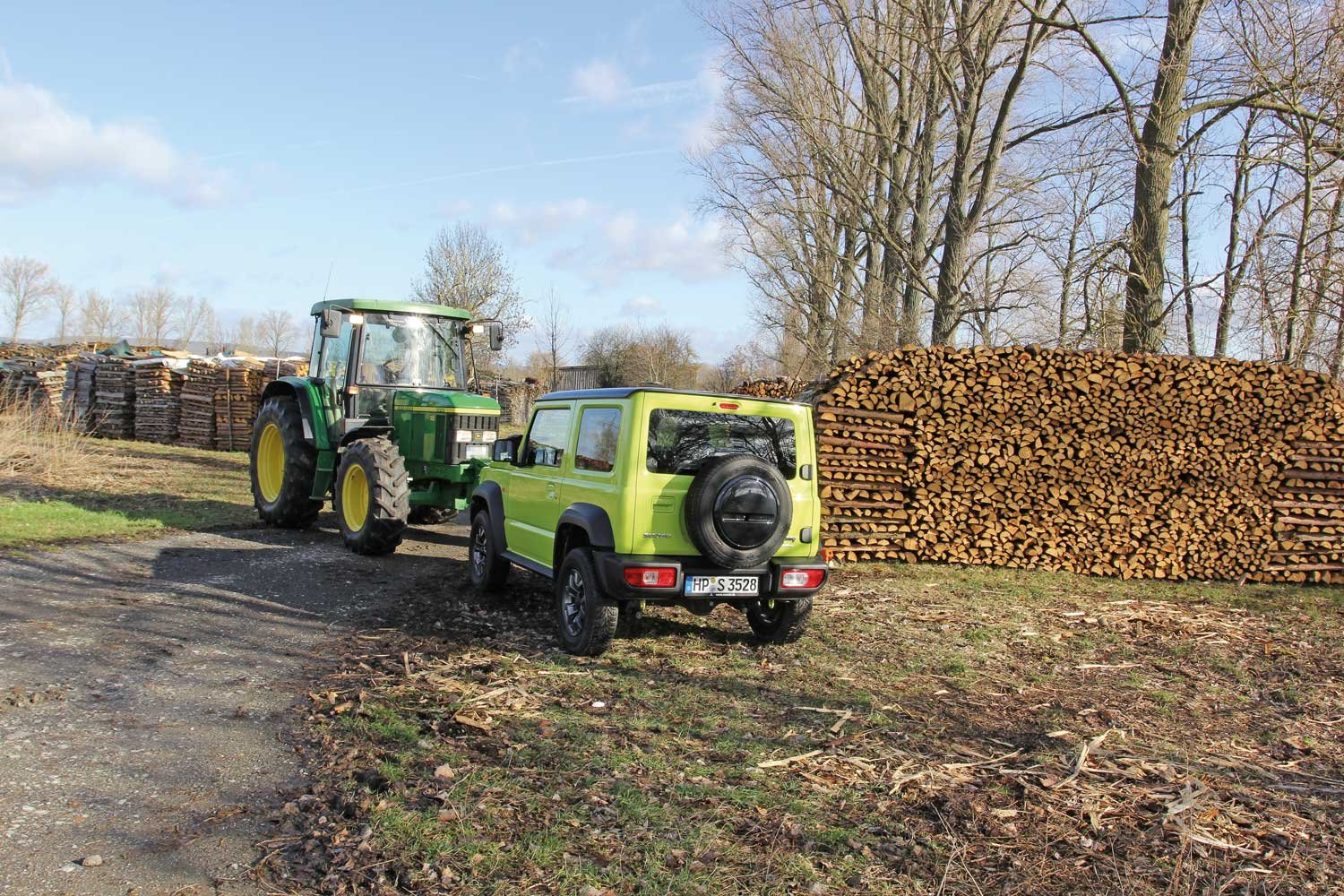 Ein verschlammter Feldweg muss als Beweis vorerst reichen. Mit einem normalen Testwagen wie etwa einem SUV hätten wir diesen ganz sicher links liegen lassen, doch wenn man schon mal einen waschechten Geländewagen im Hause hat, kann einen die Aussicht auf eine Sonderschicht in der Waschanlage nicht schrecken. Gesagt, getan: Auf den ersten Metern wühlt sich der 1165 Kilogramm leichte Jimny noch per Hinterradantrieb durch den Morast, erst wenn gar nichts mehr geht, helfen der zuschaltbare Allradantrieb und die serienmäßige Geländeuntersetzung, die Fahrt ungehindert wieder fortzusetzen. Auch wenn das Grinsen von Ohr zu Ohr reicht, teilen nicht alle Verkehrsteilnehmer unsere Freude: Der Dreck sitzt zentimeterdick in den Ritzen der Radkästen und verteilt sich Tage später noch auf der Fahrbahn – trotz der intensiven Behandlung mit einem Hochdruckreiniger.