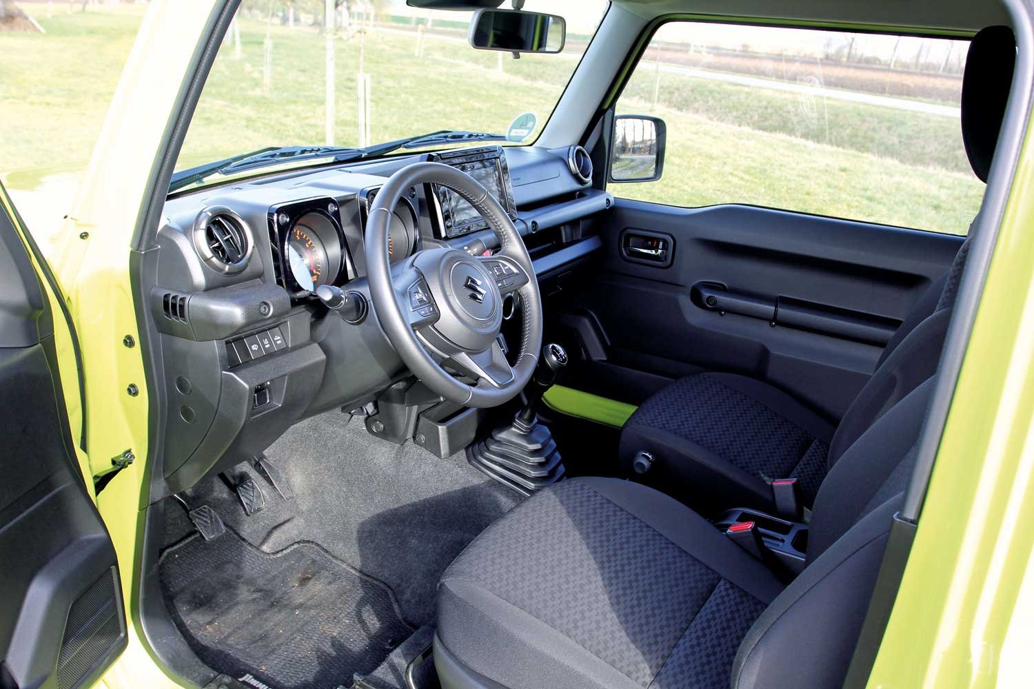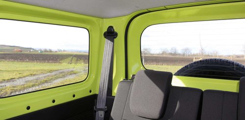 Die kantige Form folgt beim Jimny aber nicht nur einer Tradition, sondern auch dem Zweck der besseren Übersicht. Und die kommt dem Fahrer sowohl beim Rangieren im Gelände als auch in engen Parklücken zu Gute. Das dürfte auch der Grund sein, warum der Hersteller noch nicht mal gegen Aufpreis eine Einparkhilfe anbietet. Wer dennoch nicht auf Parkpiepser verzichten will, findet im Zubehörhandel entsprechende Nachrüstkits.