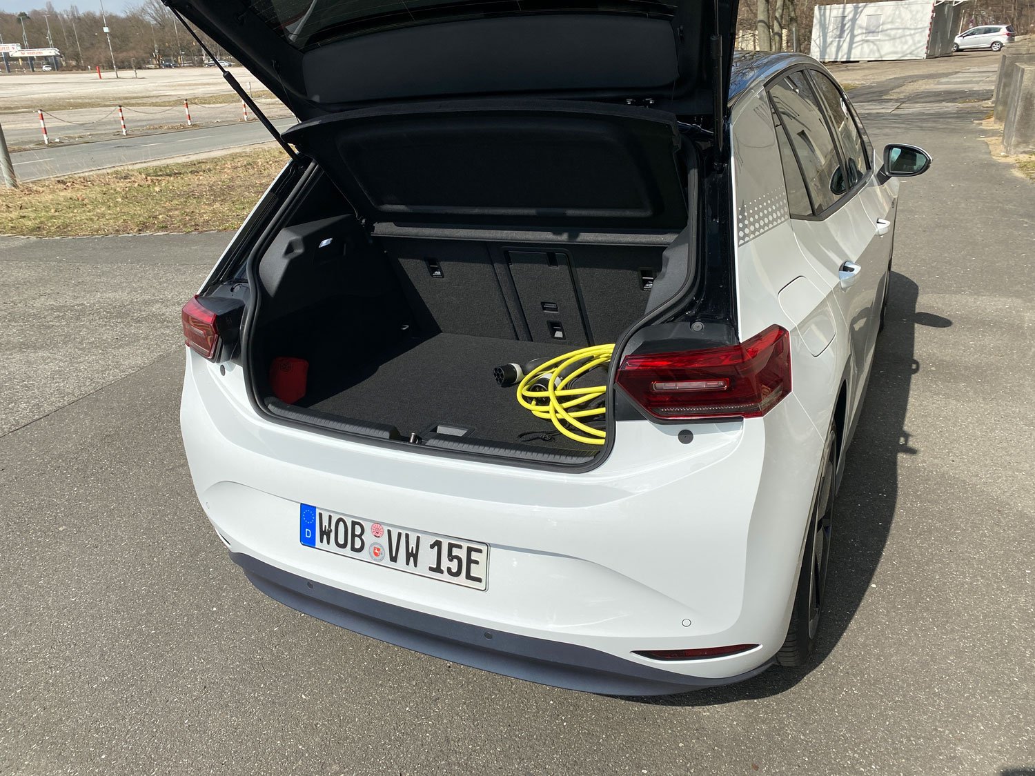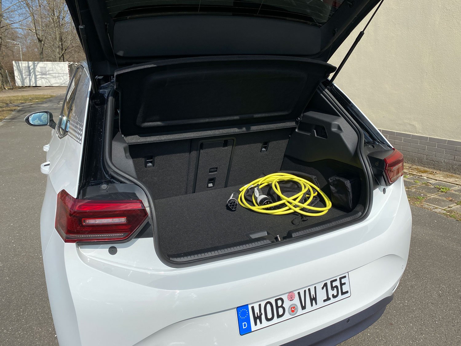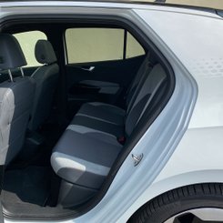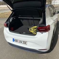 Daher fürs Protokoll: Mit festem Glasdach, hervorragend ablesbarem Head-up-Display, adaptivem Fahrwerk, Zwei- Zonen-Klimaautomatik und vielem mehr ist unser Testwagen großzügig ausstaffiert. Als Leistungsvariante „Pro Performance“ mit 150 kW/204 PS und 58 Kilowattstunden (kWh) großem Akku kommen ohne Fördergelder rund 50.000 Euro Listenpreis zusammen. Üppig ist auch das Raumgefühl in dem knapp 4,3 Meter langen Kompaktwagen. Je nach Konfiguration dürfen vier oder wie bei uns fünf Personen auf bequemen Polstern unterwegs sein. Im Fond ist die Kopffreiheit aufgrund der höher positionierten Sitzflächen etwas eingeschränkt. Die Rückbanklehne lässt sich serienmäßig geteilt umklappen, sodass ein fast ebener Laderaumboden entsteht. 385 Liter fasst das Gepäckabteil bei aufgestellter Lehne, das ist Golf-Niveau. Für die ganz große Reise mit viel Gepäck taugt der ID.3 jedoch weniger. Eine Dachbox ist nicht montierbar, denn es ist nicht vorgesehen, einen Dachträger zu nutzen.