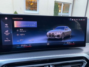 E-Mobilität ist häufig Vertrauenssache. Gerade wenn es auf längere Strecken geht und das Außenthermometer wie bei unseren Testfahrten nicht den niedrigen einstelligen Bereich verlässt, schielt man häufig auf die Reichweite, die nach WLTP-Norm und abhängig von der Rad-Reifen-Kombination zwischen 416 und 521 Kilometern beträgt. In diesem Punkt weckte der i4 M50 Vertrauen. Einerseits, weil auf Autobahn-Etappen mit höchstens 120 bis 130 km/h die Restreichweite verlässlich nur um den zurückgelegten Weg schrumpfte. Andererseits, weil wir auf Pendelstrecken über Land und durch die Stadt mit adaptiver Rekuperation (max. 195 kW) deutlich weniger verloren, als wir fuhren. Und das bei 22 Grad Innenraumtemperatur, meist aktivierter, feinstufig regelbarer Sitzheizung (380 Euro) und oft erwärmtem Lenkradkranz (270 Euro). 21,1 kWh je 100 Kilometer mit 19-Zoll-Winterrädern und gezähmtem, nicht gehemmtem Fuß am Fahrpedal sind als Verbrauch vertretbar. So macht E-Mobilität Spaß.