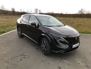 Dem Fahrvergnügen tut das aber keinen Abbruch. Flüsterleise gleitet der Ariya über Straßen und lässt Poltergeräusche beim Überfahren von Unebenheiten trotz Winterreifen mit aufpreispflichtigen 20-Zoll-Rädern (1.000 Euro) weitestgehend im Dämmmaterial verklingen. Auch wenn man dem E-SUV die Sporen geben kann, eignet sich der Ariya mit dem kleinsten Motor doch eher für eine gediegene Fahrweise, gerade weil ein durchgetretenes Fahrpedal sofort die angezeigte Reichweite purzeln lässt.
