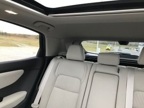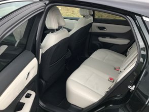 Das futuristische Außendesign setzt sich auch im Innenraum fort. Sicherlich ein Hingucker: die elektrisch verschiebbare Mittelkonsole. Sie dient entweder dem Fahrer, sein rechtes Bein entspannt anzulehnen, oder den Passagieren im Fonds als Ablage. Ausreichend Kopf- und Beinfreiheit gibt es auf allen Plätzen, insbesondere auf der Rückbank fühlt man sich wie in Abrahams Schoß.