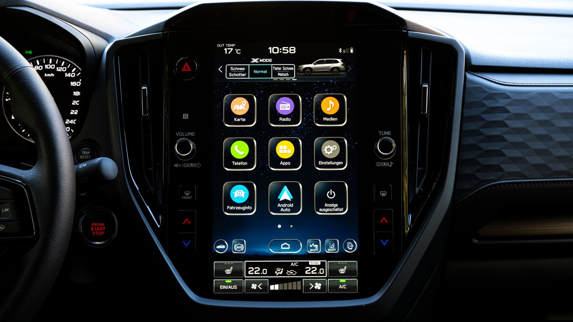 Auch auf der Straße macht das Mittelklasse-SUV eine gute Figur. In zügig durchfahrenen Kurven bleibt das Heck selbst auf nassem Untergrund in der Spur. Bei zurückhaltender Fahrweise leise, röhrt der 2,0-Liter-Boxermotor beim beherzten Tritt auf das Gaspedal aber auf. Der Antrieb leistet mit Mildhybrid-Unterstützung 100 kW/136 PS. Der Elektromotor liefert 12,3 kW/16,7 PS, was das Anfahren erleichtert.