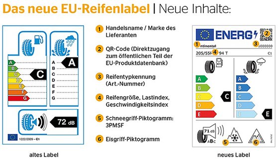 Zu diesem Zweck werden am dem 1. Mai 2021 die Labelklassen bei den Kriterien Rollwiderstand und Nassbremsverhalten neu geordnet. Außerdem wird die Geräuscheinstufung neben der dB-Angabe durch die Buchstaben A, B oder C gekennzeichnet. Zusätzlich können sich Verbraucher die umfassenden individuellen Daten zu einem Reifenmodell aus einer Datenbank der EU herunterladen. Diese Daten sind über einen einscanbaren QR-Code in der oberen rechten Ecke des Labels erreichbar.