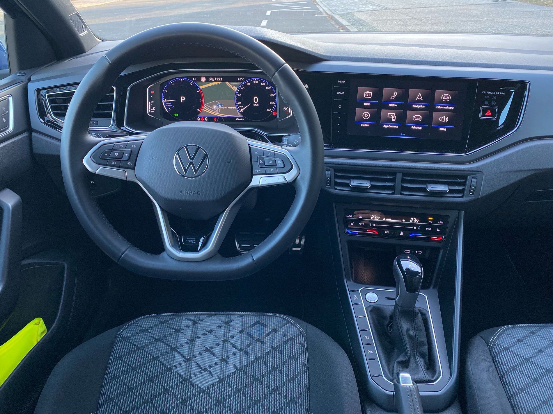 Zum Facelift zählen Retuschen an Front und Heck, aber vor allem serienmäßige LED-Leuchten vorne und hinten. Ebenfalls in der Basis drin: digitale Instrumente und ein Airbag, der sich beim Unfall zwischen den Vordersitzen entfaltet. Optional sind LED-Matrix-Scheinwerfer, die in der von uns gefahrenen R-Line-Ausstattung bereits enthalten sind. In dieser Variante kostet der Polo mit 81 kW/110 PS starkem Dreizylinder-Turbobenziner und Siebengang-Doppelkupplungsgetriebe ab 28.375 Euro.