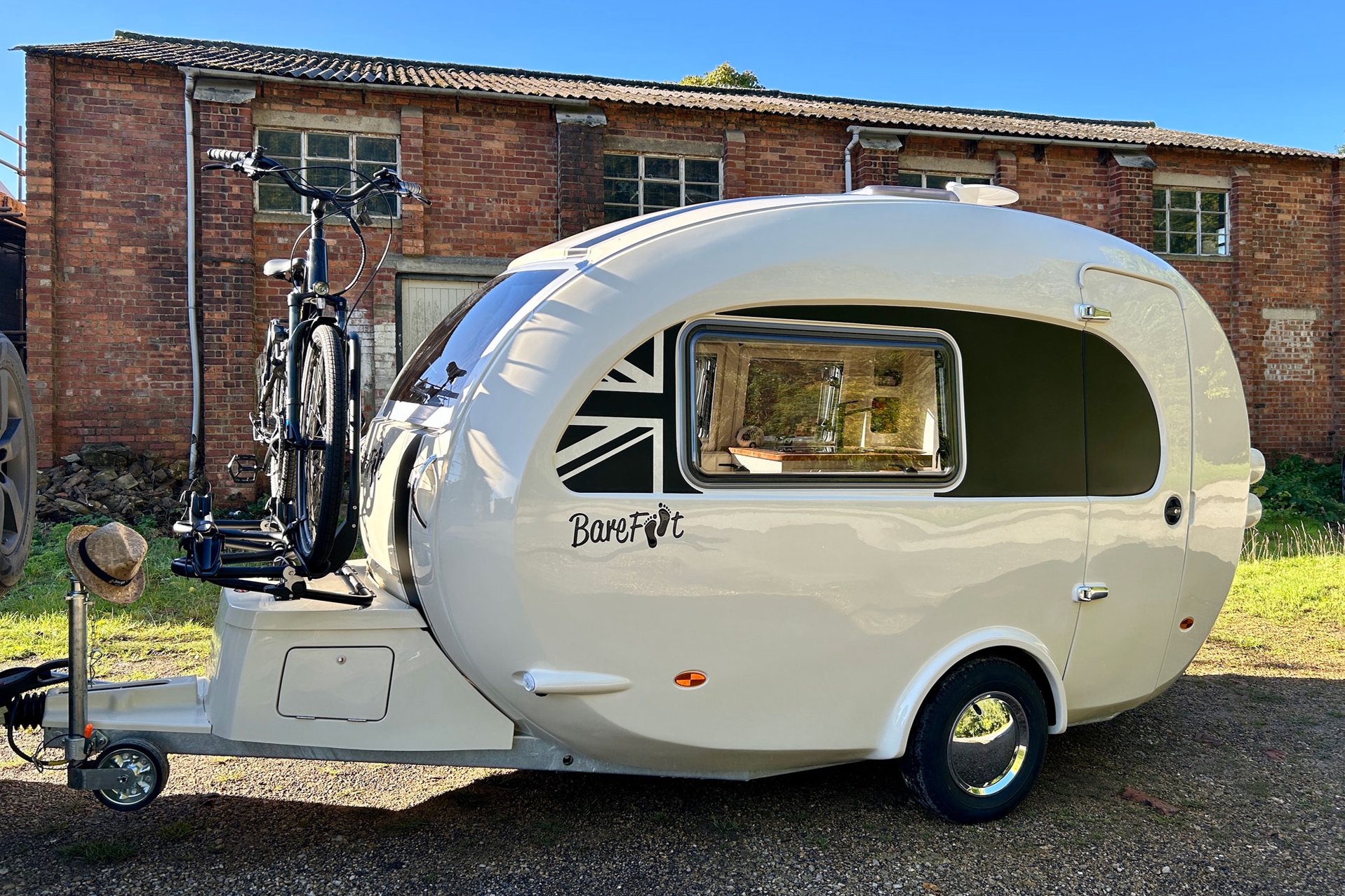 Seit 2012 produziert Barefoot einen rundlich gestylten Caravan im Retro-Look mit rund fünf Metern Länge. Jetzt kommt er in Black-Edition-Ausführung mit Glasfasergehäuse (Länge: 378 cm) und schwarzen Grafiken. Der 192 Zentimeter breite Caravan wird von Hand gefertigt. Er verfügt über eine U-förmige Sitzgruppe, die zum Bett umgestaltet werden kann, Küche und Bad. Mit Heizung, Warmwasser- und Solar-Anlage ist er ganzjährig nutzbar. Das zulässige Gesamtgewicht liegt bei 1.100 Kilo (Leergewicht: 960 kg). Damit passt der Barefoot auch hinter Elektroautos. Wermutstropfen ist der Preis.