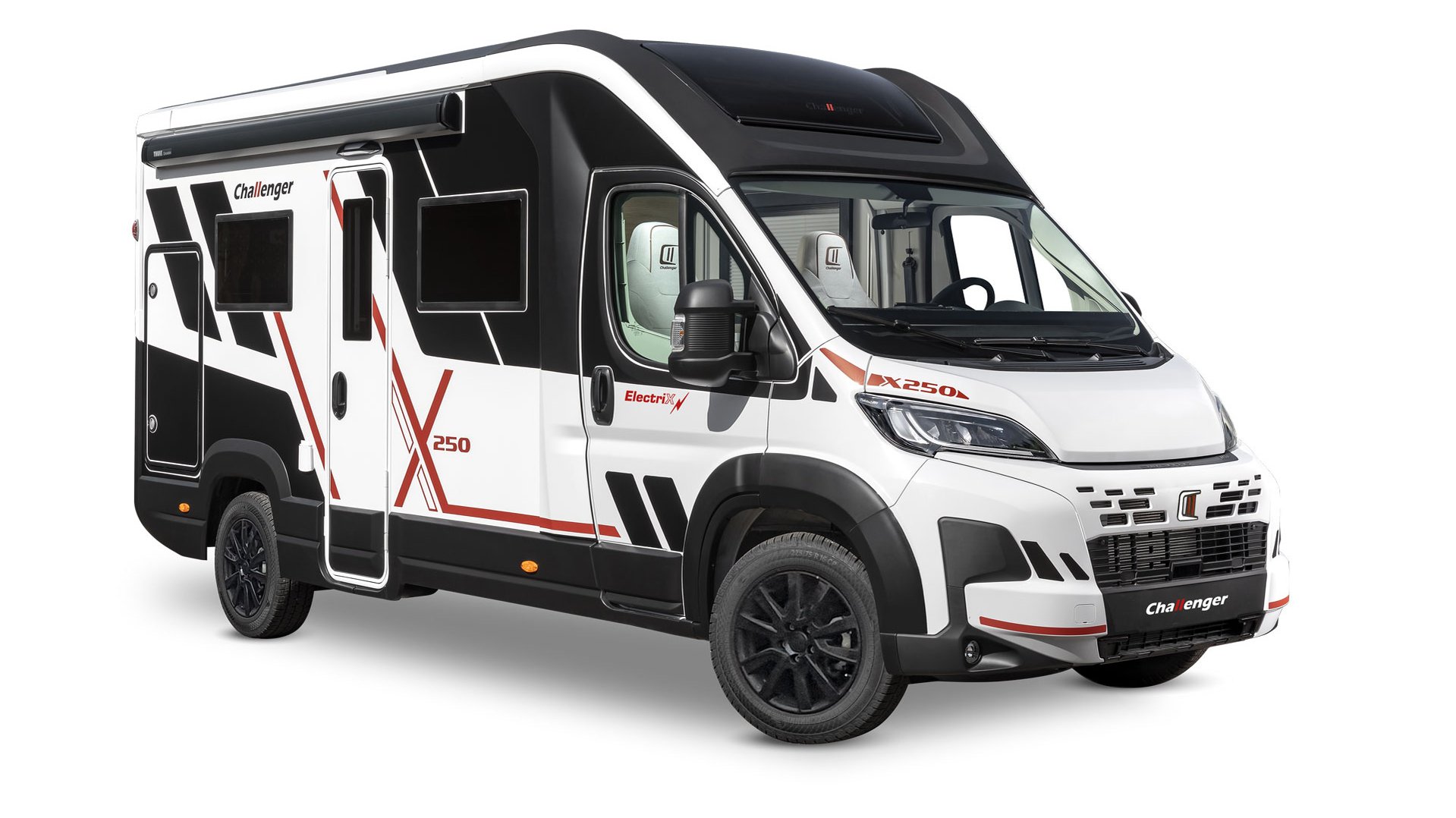 E-Mobilität im Reisemobil ist für die meisten Camper (noch) kein kaufentscheidendes Thema. Vielleicht ändert das die Marke Challenger: Die Electrix-Variante der kompakten Modelle X150 und X250 sind 210 Zentimeter breite Teilintegrierte (600 und 636 cm Länge). Die Plug-in-Hybride kosten rund 25.000 Euro mehr als herkömmlich angetriebene, vergleichbare Modelle. Zwar gibt es den Fiat Ducato (noch) nicht als Plug-in-Hybrid. Die Franzosen setzen auf Unterstützung von der britischen Firma Bedeo, spezialisiert auf die Elektrifizierung von Nutzfahrzeugen. Die kombinieren den Diesel des Fiat (103 kW/140 PS oder 132 kW/180 PS) mit zwei in den Radnaben der Hinterachse installierten E-Motoren mit einer Systemleistung von 115 kW/156 PS. Der Akku fasst 37 kWh. Gefahren wird etwa auf der Langstrecke mit Verbrenner oder in Städten und Umweltzonen elektrisch.