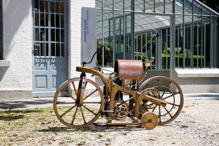 Dass Gottlieb Daimler das Automobil und den schnelllaufenden Ottomotor erfunden hat, ist keine Neuigkeit. Aber auch das erste Motorrad hat seine Wurzeln in einer süddeutschen Versuchswerkstatt. Der „Daimler-Reitwagen“ wurde 1885 von Gottlieb Daimler und Wilhelm Maybach konstruiert und gilt als das erste Motorrad der Welt. In Bad Cannstadt bauten die beiden Erfinder das zweirädrige Mobil mit Verbrennungsmotor. Die Höchstgeschwindigkeit betrug zwölf Kilometer pro Stunde. Der Reitwagen bestand aus Holz und verstärkenden Eisenplatten. 1895 erhielten Daimler und Maybach das Patent auf ihren „Standuhr“ genannten schnelllaufenden Einzylinder-Viertaktmotor. Ein Nachbau des 1903 bei einem Feuer zerstörten Originals steht zur Besichtigung im Mercedes-Benz-Museum in Stuttgart. Die Versuchswerkstatt in Bad Cannstadt ist heute eine Gottlieb-Daimler-Gedächtnisstätte mit kleinem Museum.