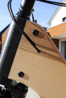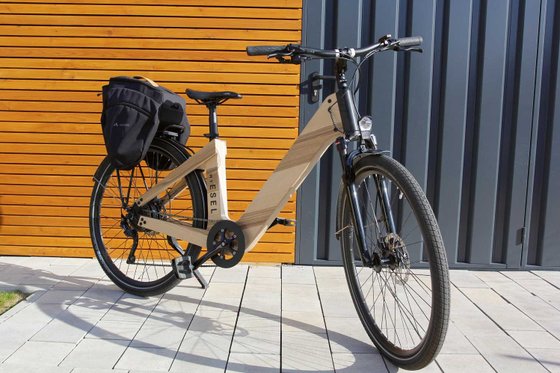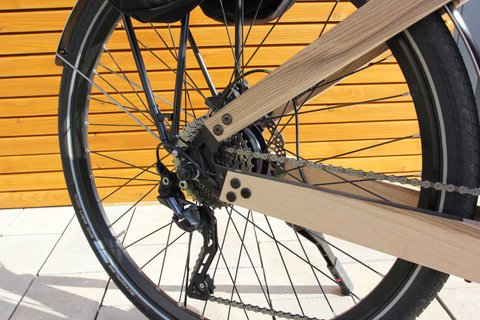 Ja, das Fahrrad ist tatsächlich aus Holz, wie den Passanten der „Klopftest“ am Rahmen bestätigt. Genau genommen aus Kernesche. Und wer noch eins draufsetzen möchte, verrät, dass es sich hier um ein Pedelec handelt. Denn das ist kaum ersichtlich: Der Akku ist im hohlen Holzrahmen versteckt, beim Motor handelt es sich um einen Nabenantrieb im Hinterrad. Und das kleine, unscheinbare Display mit Geschwindigkeitsanzeige, Ladezustand und fünf Leistungsstufen geht problemlos auch als Tacho durch. Die Kombination aus Holz und E-Antrieb hat’s in sich: Als ob jemand einem einen ordentlichen Schub verpasst, beschleunigt das leichte Pedelec (unter 20 Kilo) mühelos und kraftvoll bis 25 km/h. So kommen wir mit dem 400-Wh-Akku mehr als 80 Kilometer weit – und das auffallend ruhig, leise und komfortabel. Der Holzrahmen dämpft Vibrationen. Selbst mit leerem Akku kommt man dank 100 Prozent Freilauf des Motors noch prima voran. Auch die Ausstattung hat uns begeistert: die Ergonomie von Gabel, Griffen und Sattel machen selbst längere Strecken zum Vergnügen. Einziges Manko: Zum Laden ist eine Steckdose in Fahrradnähe nötig – der Akku kann nur über eine Serviceöffnung unter dem Tretlager entnommen werden. Und noch eine Frage hat Passanten beschäftigt: Ist der Rahmen nicht recht empfindlich? Nein, dank einer speziellen Versiegelung ist er wetterfest und robust. Und absolut alltagstauglich. Warum auch nicht? Immerhin werden Skier, Boote und sogar ganze Häuser ebenfalls aus Holz gefertigt.