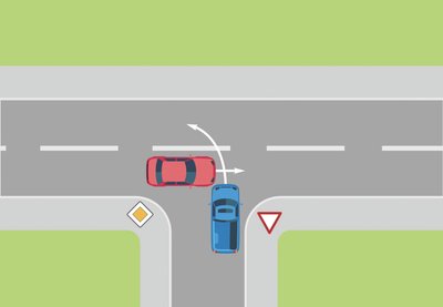 Eine Pkw-Fahrerin missachtet an einer Einmündung die Vorfahrt eines Autos, das sich von links nähert. Die beiden Autos kollidieren. Auf dem Beifahrersitz des blauen Pkw befindet sich ein Baby in einer Babyschale, die zwar entgegen der Fahrtrichtung steht, aber nicht durch einen Sicherheitsgurt befestigt ist. Auch das Baby ist nicht ordnungsgemäß mit den Gurten des Kindersitzes gesichert. Der Säugling wird aus der Babyschale geschleudert und erleidet schwere Kopfverletzungen.