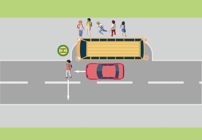 Der Schulbus steht mit eingeschaltetem Warnblinklicht an einer Bushaltestelle. Vor dem Bus überquert ein Schüler plötzlich die Fahrbahn. Ein herannahender Pkw, der den Schulbus mit etwa 50 km/h überholt, kann nicht mehr rechtzeitig bremsen oder ausweichen. Das Auto erfasst das Kind, es erleidet schwere Verletzungen.