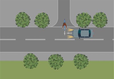 Ein neunjähriges Kind will bei Dunkelheit die Fahrbahn einer Bundesstraße überqueren. Es fährt, ohne zu bremsen, aus der Ausfahrt seines Wohnhauses auf die Fahrbahn. Das Fahrrad ist nicht mit einer Beleuchtung nach Straßenverkehrszulassungsordnung (StVZO) ausgestattet, zudem ist das Kind dunkel gekleidet. Ein von links kommender Pkw-Fahrer erkennt den Radfahrer aufgrund der fehlenden Beleuchtung und sichtbehindernder Bäume am Straßenrand zu spät, es kommt zu einer für das Kind schwerwiegenden Kollision.