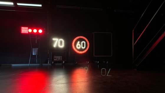 Auch lichttechnisch aktive Einrichtungen, die ein Leuchtmittel wie LED benötigen, spielen in der Lichthalle eine Rolle. Dazu zählen zum Beispiel Wechselverkehrszeichen. Sie werden hier ebenfalls erprobt und geprüft. Auch unterstütze die BASt den Einsatz von LED für Lichtsignalanlagen und Wechselverkehrszeichen. Damit hat sich der Energieverbrauch bei modernen Lichtsignalanlagen und Wechselverkehrszeichen laut eigenen Angaben gegenüber der Glühlampentechnik auf etwa ein Zehntel reduziert – und so steht neben Verkehrszeichen auch das Thema Umwelt in der dunklen Halle im Lichtkegel.