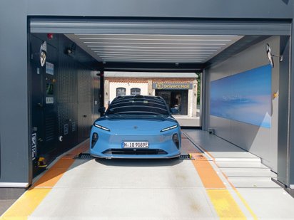 Wie der Akkuwechsel genau funktioniert, testeten wir mit einem Nio ET5 in Berlin-Spandau. In einem Gewerbepark hat der Hersteller eine neue Swap-Station eingerichtet. Die Technik verblüfft: Am Standort angekommen, fährt das Fahrzeug autonom und wie von Geisterhand gesteuert rückwärts in eine Art Garage. Es ruckelt, vom Unterboden dringen Schraubgeräusche ins Cockpit. „Jetzt wird die leere Batterie entnommen. Und von der anderen Seite kommt aus dem Ladekabinett eine frisch aufgeladene Batterie und wird im Fahrzeug installiert“, erklärt der anwesende Mechatroniker den vollautomatischen Prozess. Kurz darauf ist der rund 500 Kilogramm schwere Akku gewechselt. Wie bei einer Waschanlage schaltet eine Ampel auf Grün und wir können weiterfahren.