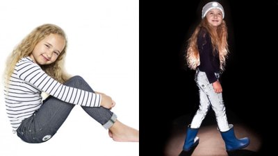 Die Jeans reflektiert das Licht von Autoscheinwerfern schon aus bis zu 150 Metern. Elastisches Material und ein verstellbares Innenbündchen sorgen für Komfort und Mitwachsen.