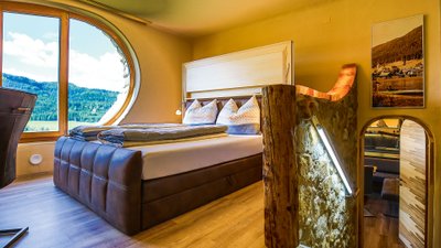 Wasserfans kommen in der Royal Suite im Weinegg Wellviva Resort bei Eppan (Südtirol) auf ihre Kosten. Denn die 100 Quadratmeter große Suite bietet nicht nur höchsten Wohnkomfort, sondern auch einen direkten Zugang zum ganzjährig beheizten Suiten-Pool. Ein Steg führt von der privaten Südterrasse direkt zum Wasser. Ob zu zweit oder zu fünft: Genügend Platz bietet die Royal Suite auf jeden Fall. Im Sommer wird sich nach dem Sprung ins kühle Nass auf der Terrasse gesonnt, in den Wintermonaten geht es in die finnische Sauna. Und wer endlich einmal unter freiem Himmel schlafen will, wählt das Outdoor-Himmelbett. Ab 330 Euro pro Nacht mit Dreiviertel-Pension, Kinder ermäßigt.