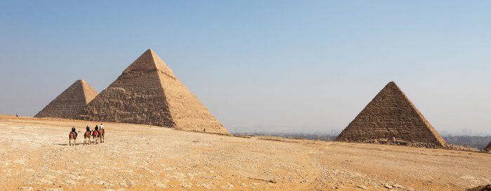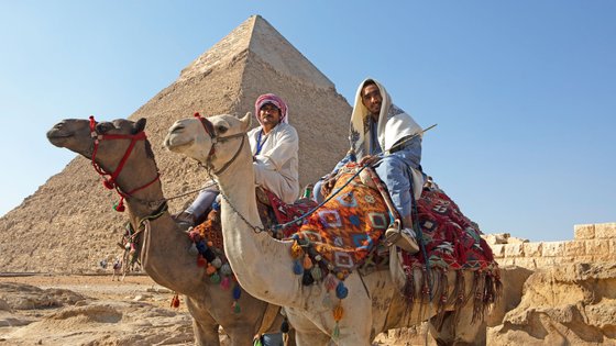 In Gizeh, rund 850 Kilometer nördlich, schwärmen derweil Abdallah und Ansralam von den Pyramiden. Die beiden Männer sitzen in Gizeh in der Metropolregion Kairo auf ihren Kamelen Mickey Mouse und Adam. „110 von diesen Pharaonen-Begräbnisstätten gibt es noch. Die größte misst eine Seitenlänge von 230 Metern. Kaum vorstellbar, dass sie früher weiß verputzt gewesen sein sollen mit einer goldenen Spitze“, erklärt der 28-jährige Abdallah. Der sportliche Mann ist einer von zahlreichen Kamelführern, die Touristen einen Ritt auf ihrem Kamel um die berühmten Pyramiden anbieten. „Hier soll es auch einen Fluss gegeben haben, auf dem man die Felsbrocken für den Pyramiden-Bau transportierte“, ergänzt der 37-jährige Ansralam.