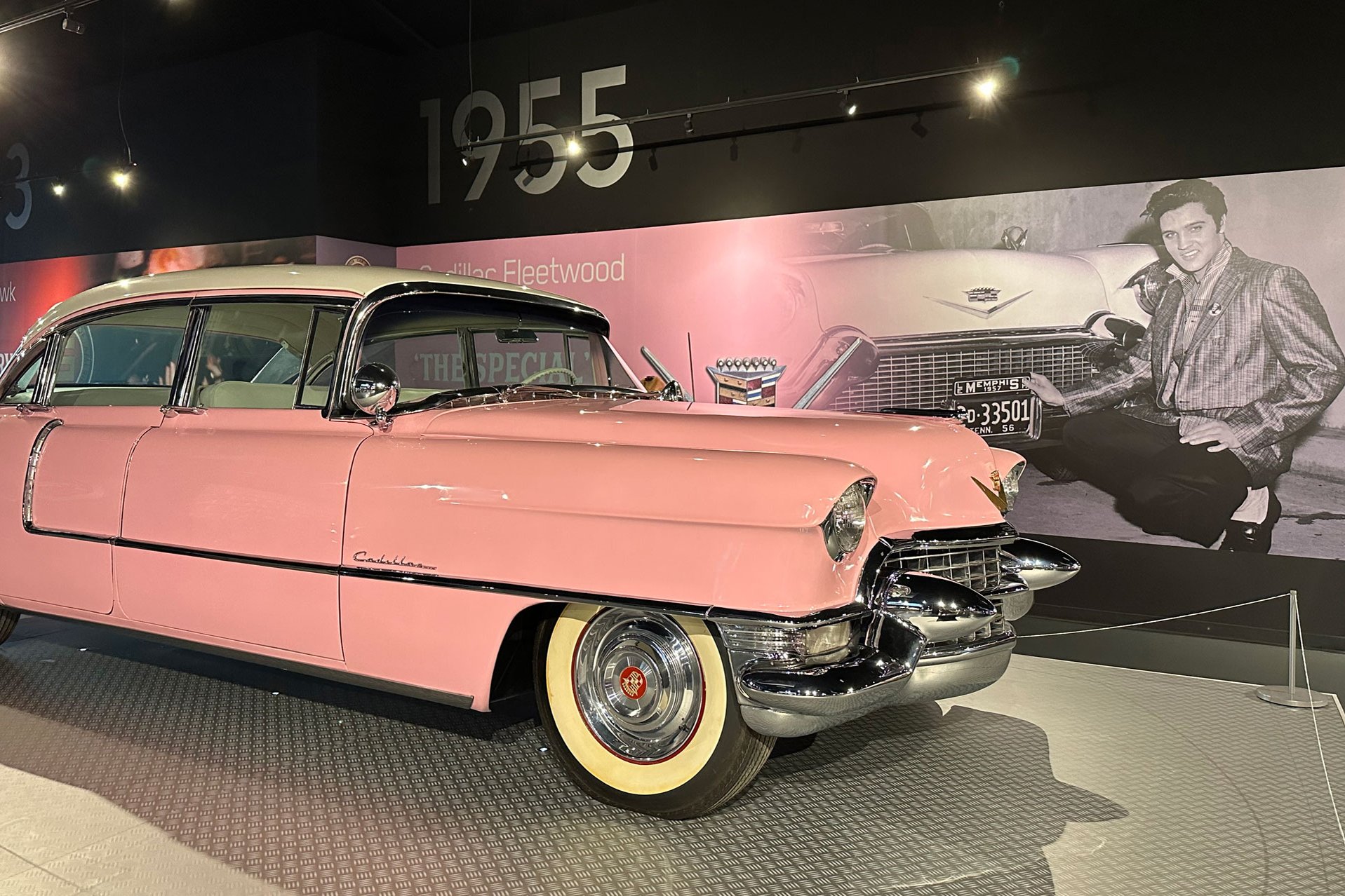 Das lila Cadillac Eldorado Biarritz Convertible Coupé ist ein Paradebeispiel für die Individualität, die Elvis zur kulturellen Ikone machte. Das Auto wurde 1956 während einer Tournee in Texas gekauft und war ursprünglich weiß. Der Geschichte zufolge sah der King einen älteren Mann, der auf dem Parkplatz des Autohauses Fahrzeuge wusch. Er ließ sich von ihm zum Manager bringen, um diesem zu sagen, dass er das Auto kaufen wolle und dass die Verkaufsprovision an diesen Herrn gehen solle.
