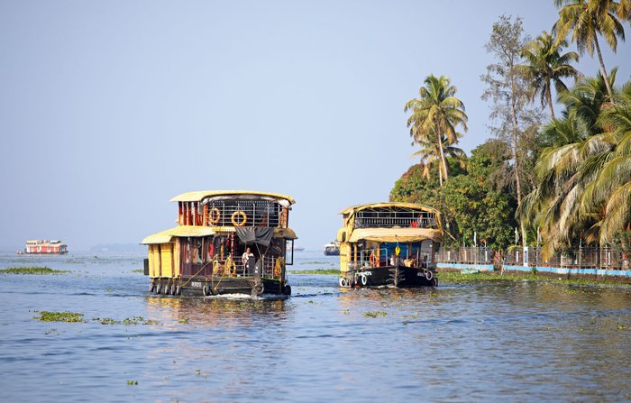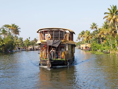 Zu Beginn des 20. Jahrhunderts bauten die ersten Privatleute am Seeufer illegal Reis an. Der herrschende Maharadscha drückte beide Augen zu, schließlich wollte er die Versorgung der Bevölkerung gewahrt wissen. Daraufhin kamen weitere Anbaugebiete hinzu. Um den Reis zu transportieren, grub man Kanäle. Auf denen fuhren rund 2.000 Barken durch Kerala, jede mit bis zu 40 Tonnen Reis an Bord. Heute sind es noch fast 500 Boote, die den Touristen auf noblen Aufenthaltsdecks und in schicken Schlafkabinen ein luxuriöses, geruhsames Urlaubsgefühl garantieren, Butler- und Kochservice inklusive. Nur am späten Nachmittag wird es einmal hektisch. Dann eilen die Hausbootkapitäne zu den Anlegestellen, denn ab 17.30 Uhr dürfen nur noch Fischer auf ihren Booten unterwegs sein.