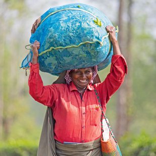 Der Tee, den die Lady serviert, wächst im östlichen Hochland. Die Region um die Ortschaft Munnar ist berühmt für ihre gigantischen Teeplantagen. Wie ein grüner Teppich überziehen die Teebüsche die hügelige Landschaft. Darin balancieren bunt gekleidete Frauen dicke Säcke mit frisch geernteten Blättern auf ihren Köpfen oder schneiden an den Büschen. Eine davon ist Stella. Sie arbeitet für die Kanan Devan Hills Plantations Company, die größte Teefirma der Welt, die sich im Besitz der Mitarbeiter befindet. „Weißer Tee ist der edelste. Dafür pflücken wir nur das jeweils oberste Blatt eines Zweiges per Hand“, erklärt die Teepflückerin. „Für grünen Tee kommen nur das zweite und dritte Blatt in Frage. Für Schwarztee dürfen wir die Teeblatt-Schneideschere benutzen. Dann wird aus vier Kilogramm Blättern ein Kilogramm Schwarztee“, fährt die 40-Jährige fort und kippt den Schnitt, der sich in ihrem an der Schere angebrachten Stoffsäckchen befindet, in das Sammeltuch, das sie um Kopf und Hüfte geschnallt hat. „Auf insgesamt 24.000 Hektar Anbaufläche produzieren wir fast ein Drittel des indischen Tees unter der Marke Ripple Tea. Als herausragend gilt unser partizipiertes Managementsystem, bei dem die Aktionäre des Unternehmens hauptsächlich die Mitarbeiter sind. So dürfen die beiden in einem Jahr als beste ausgezeichneten Arbeiter im nächsten Jahr in den Vorstand der Firma“, sagt die adrette Frau stolz und blickt hinunter auf die Straße, die gerade zwei Kühe blockieren. Kühe sind in Indien heilig und haben deshalb viele Freiheiten. Auch auf der Straße.