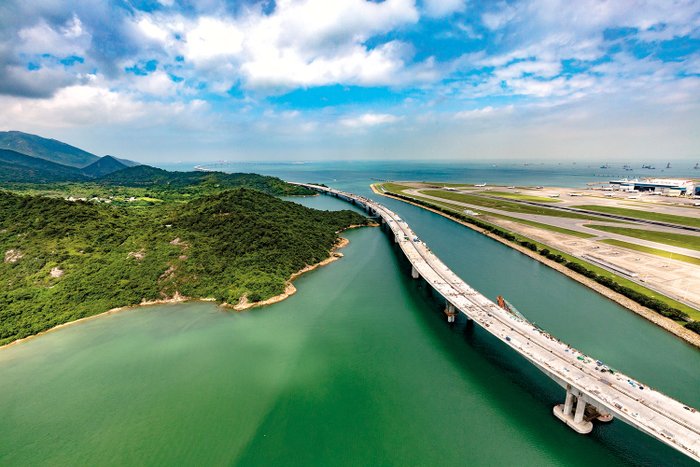 Die längste Seebrücke der Welt verbindet auf über 55 Kilometern die beiden Sonderverwaltungszonen Hongkong und Macao mit Zhuhai in der chinesischen Provinz Guangdong. Die Fahrzeit zwischen dem Flughafen Hongkong auf Lantau Island bis nach Zhuhai verkürzte sich durch den Bau von vier Stunden auf 45 Minuten. Die im Oktober 2018 eröffnete Strecke führt durch einen Tunnel und über mehrere Brückenelemente. An den jeweiligen Auf- und Abfahrten befinden sich Grenzposten. Die Distanz entspricht der 20-fachen Länge der Golden Gate Bridge in San Francisco.