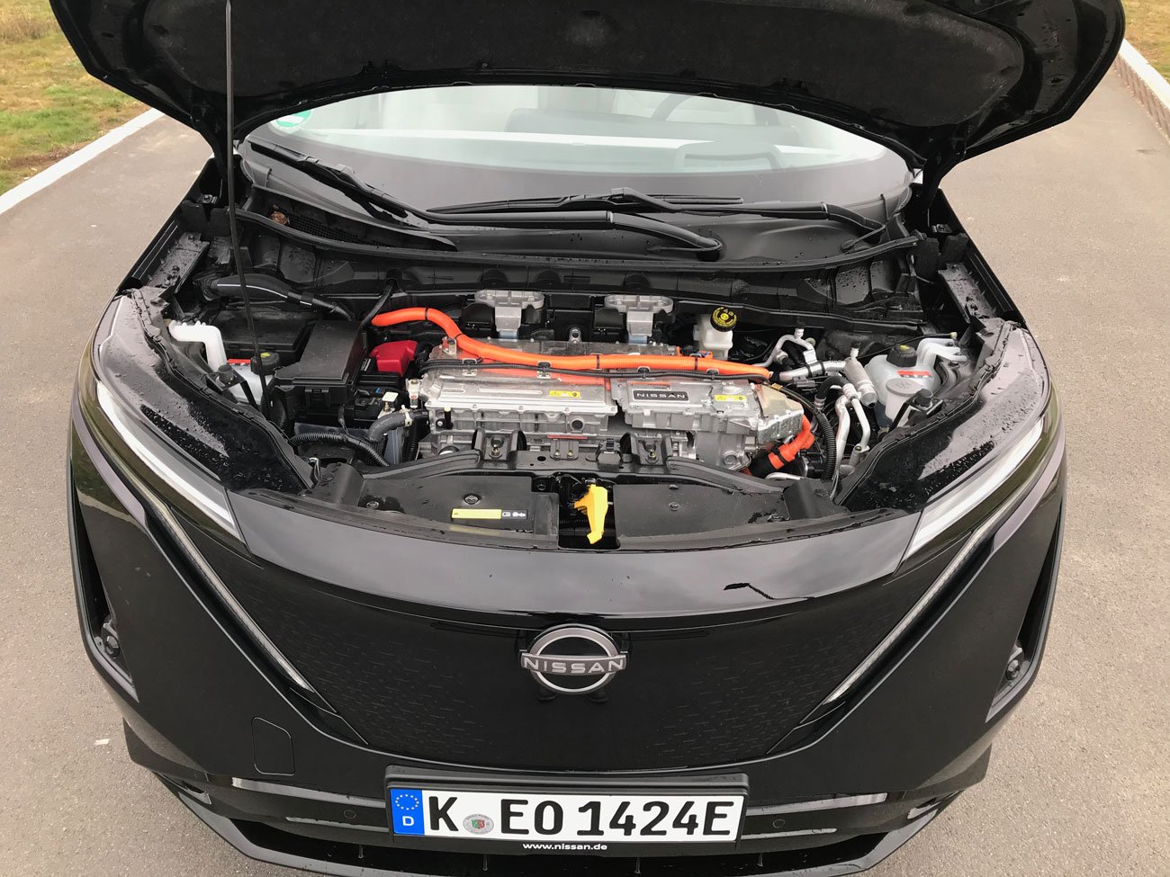 Dem Fahrvergnügen tut das aber keinen Abbruch. Flüsterleise gleitet der Ariya über Straßen und lässt Poltergeräusche beim Überfahren von Unebenheiten trotz Winterreifen mit aufpreispflichtigen 20-Zoll-Rädern (1.000 Euro) weitestgehend im Dämmmaterial verklingen. Auch wenn man dem E-SUV die Sporen geben kann, eignet sich der Ariya mit dem kleinsten Motor doch eher für eine gediegene Fahrweise, gerade weil ein durchgetretenes Fahrpedal sofort die angezeigte Reichweite purzeln lässt.