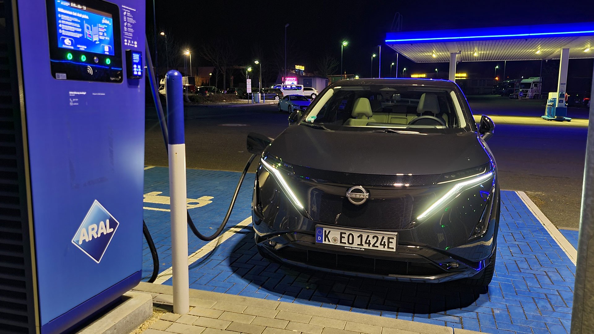 Bei kalten Witterungsbedingungen wie im Testzeitraum konnte eine dreistellige Zahl aber nicht realisiert werden. Ohne Vorkonditionierung des Akkus, für das die Aktivierung einer Funktion in den Tiefen des Infotainmentsystems notwendig ist, kamen wir bestenfalls auf etwa 55 kW. Mit Vorkonditionierung stieg die Ladeleistung bei Temperaturen an der Null-Grad-Grenze kurzfristig auf etwa 80 kW an. Knackpunkt ist die Akku-Temperatur. Fällt diese zu niedrig aus, regelt das Batteriemanagement die Ladeleistung herunter, um dauerhafte Schäden der Zellen zu vermeiden. Ladestopps verlängern sich dadurch im Winter aber deutlich. Bei der Reichweite verspricht Nissan 403 Kilometer – mehr als 300 waren bei uns aber nicht drin.