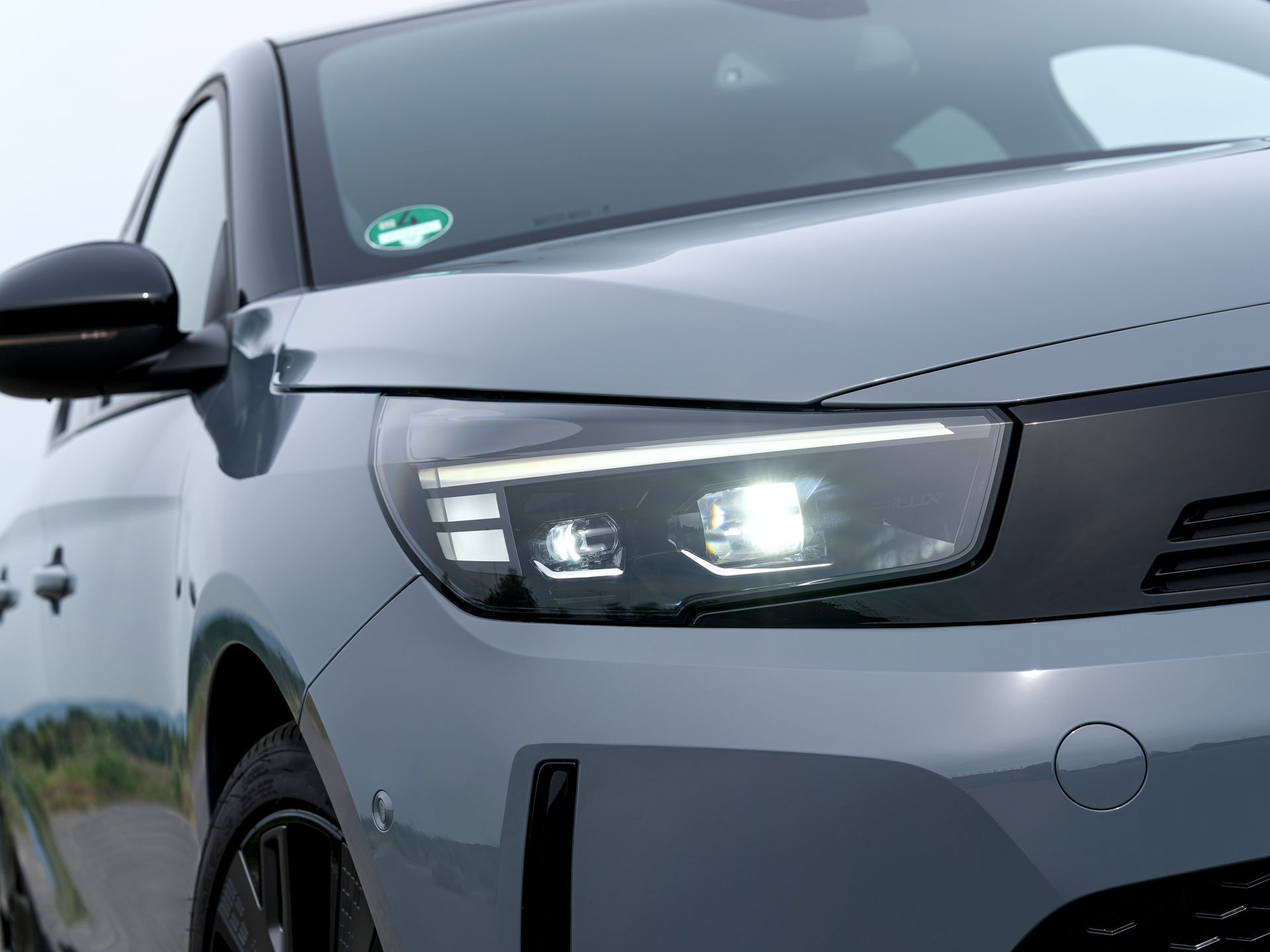 Augenfälligstes Merkmal dieser Maßnahme ist die überarbeitete Frontpartie, die nun das inzwischen für Opel typische, glattflächige Markengesicht mit dem Blitz trägt. Rechts und links dieses „Vizor“ genannten Elements lassen sich auf Wunsch LED-Matrix-Scheinwerfer einbauen (ab 750 Euro), die nun mit 14 statt acht LED-Elementen und um 30 Prozent verbesserter Lichtleistung die Dunkelheit erhellen. Speziell der mit Strom fahrende Corsa bekommt eine so weitreichende technische Bearbeitung, dass dem bisherigen batterieelektrischen Modell nun eine echte zweite Variante zur Seite steht.