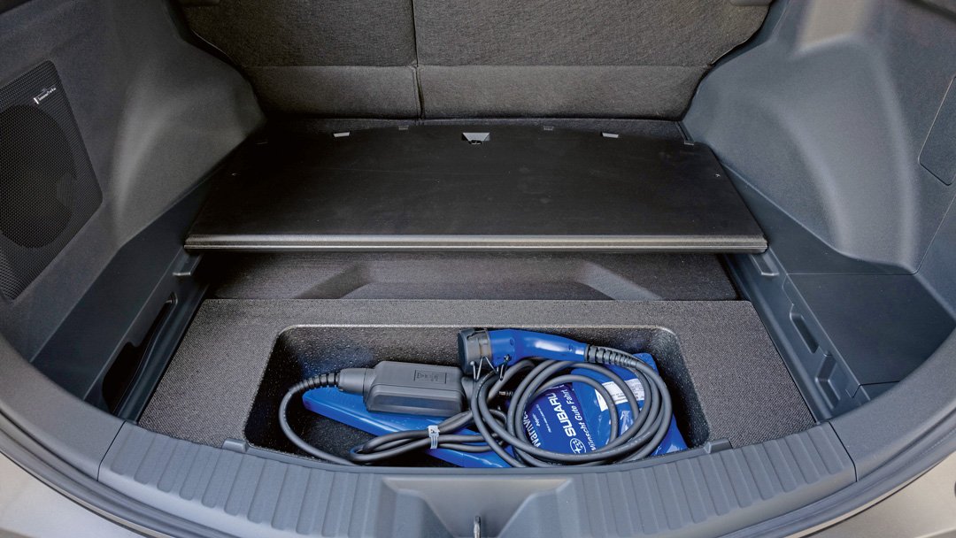 Das Fahrverhalten mit Lenkung und Federung ist tadellos, und die Bodenfreiheit von 21 Zentimetern ließ beim Ausflug abseits befestigter Straßen erwarten, dass dem Stromer die Subaru-angestammte Jäger-, Förster- und Gartenbesitzerkundschaft nicht verloren gehen könnte.
