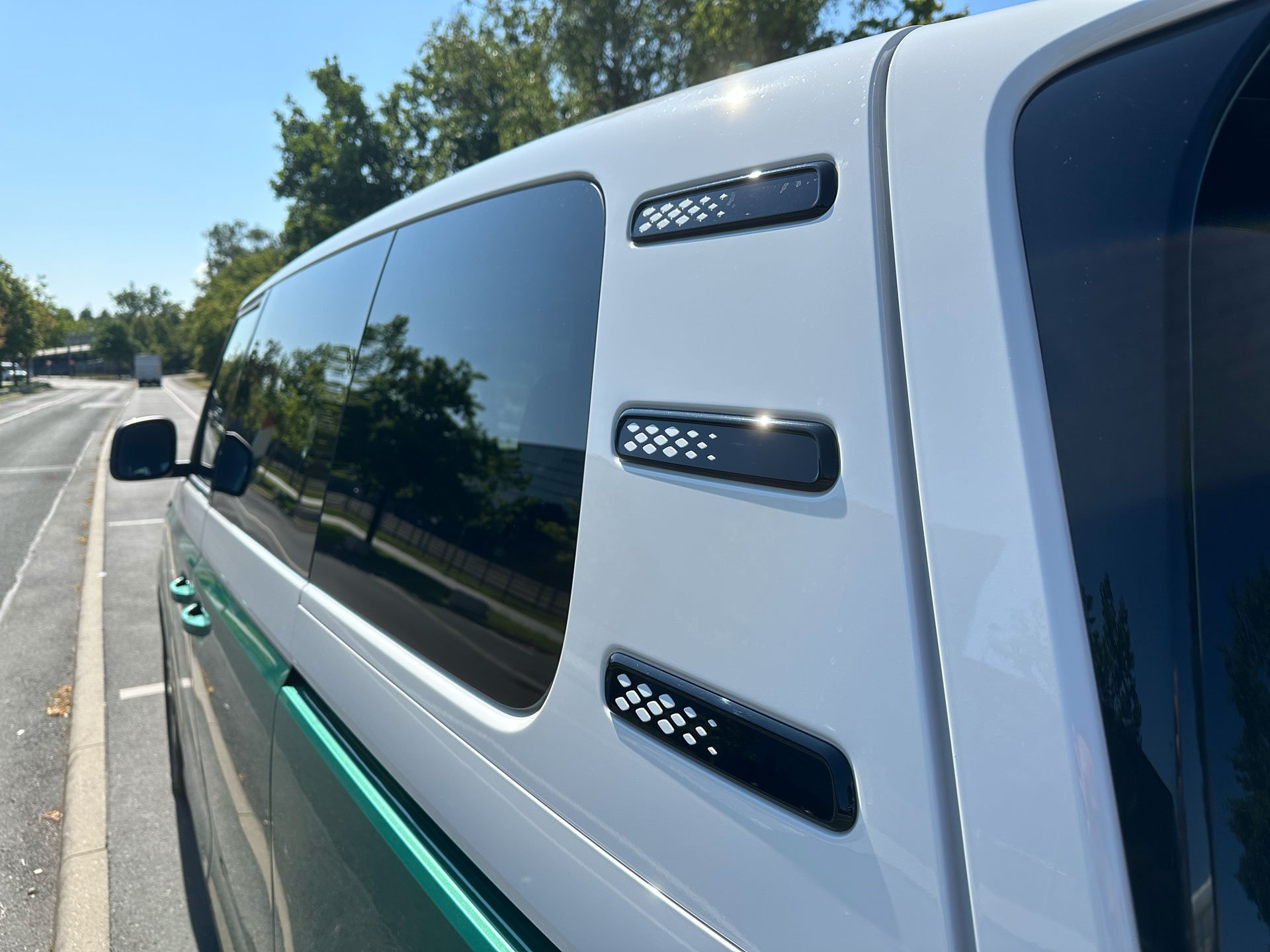 Auch an anderer Stelle wird es bei der serienmäßig hochwertig ausgestatteten, vorerst einzigen Personenfahrzeugversion des ID.Buzz teuer. Mit 3.094 Euro lässt sich VW die schicke Zweifarblackierung fürstlich entlohnen. Durch diesen Auftritt sorgte das Auto allerdings bei allen, mit denen wir darüber sprachen, ausnahmslos für Sympathiebekundungen.