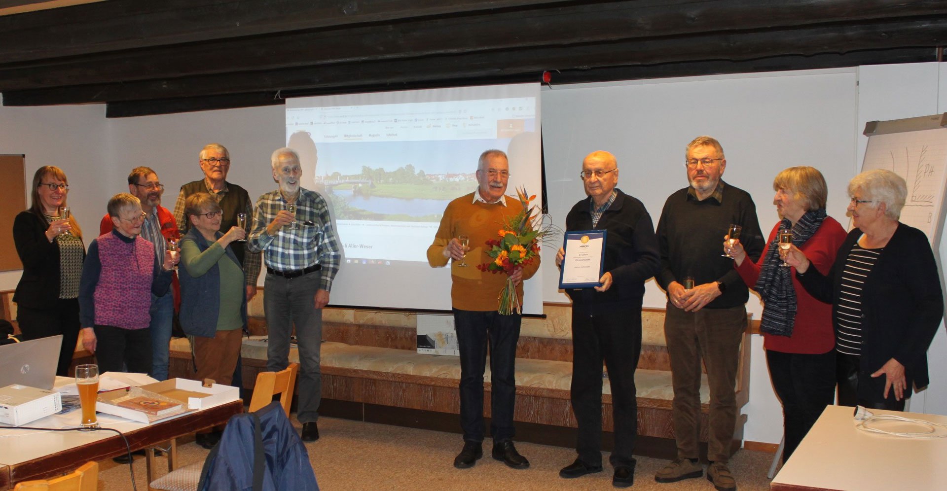 Bei einem Gläschen Sekt und Entgegennahme eines Blumenstraußes konnten die anwesenden OC-Mitglieder ihrem OC-Kollegen für die besondere Treue zum ARCD und zum OC Aller-Weser gratulieren und ihm zugleich für die aktive Präsenz bei den OC-Versammlungen herzlich danken.
