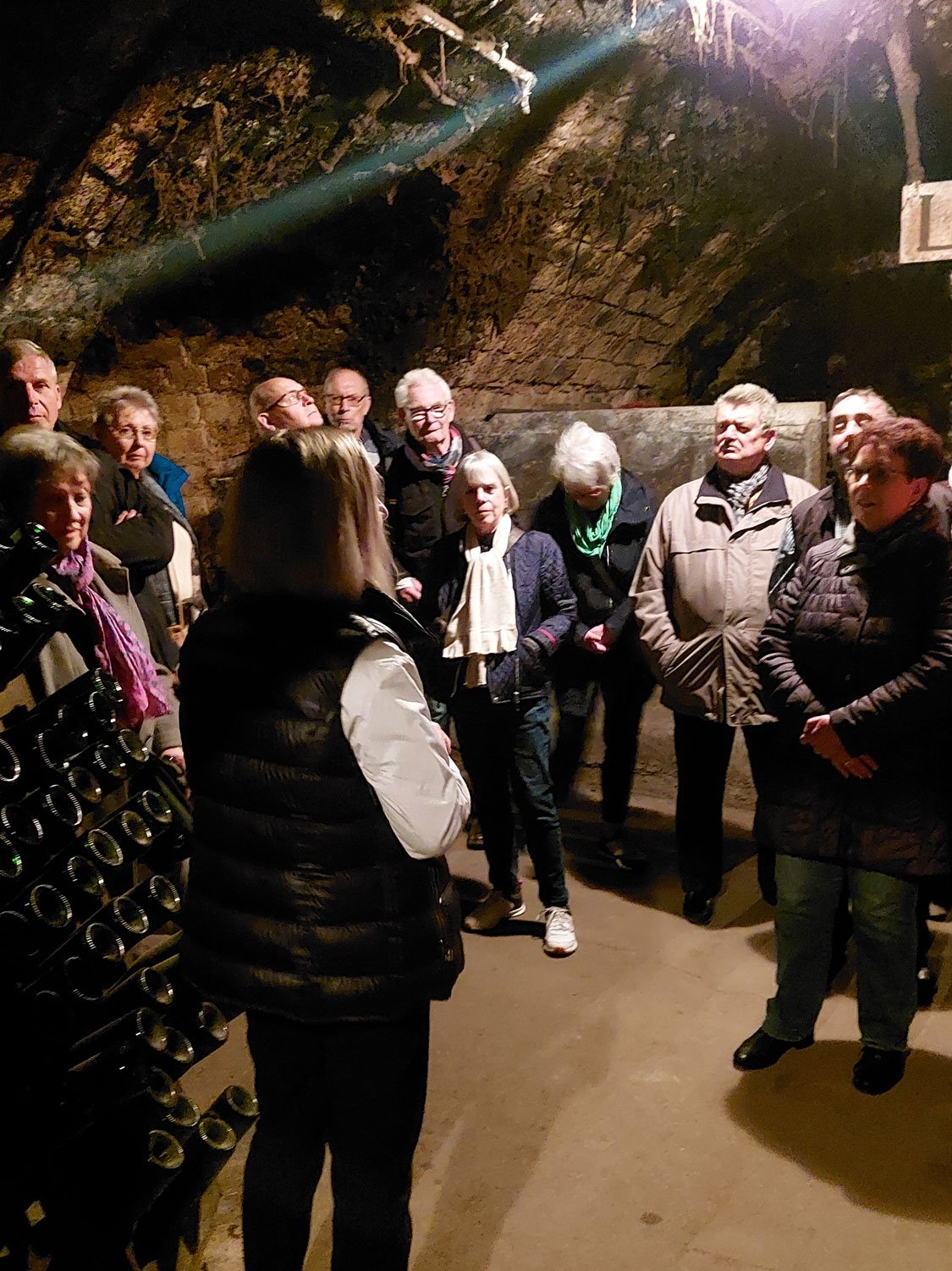 Die Besichtigungstour mit weiteren fachkundigen Erklärungen führte danach in die tiefst gelegene 7-stöckige Sektkelleranlage der Welt, in der weit über 1 Million abgefüllte Flaschen mit Füllwein lagern. Leider alles nicht mehr trinkbar. Die heutige Produktion der Marke Kupferberg erfolgt längst bei der Sektkellerei Henkel in Wiesbaden. Den Abschluss der Besichtigung bildete ein stilgerechter Umtrunk mit einem Gläschen Kupferberg Gold.